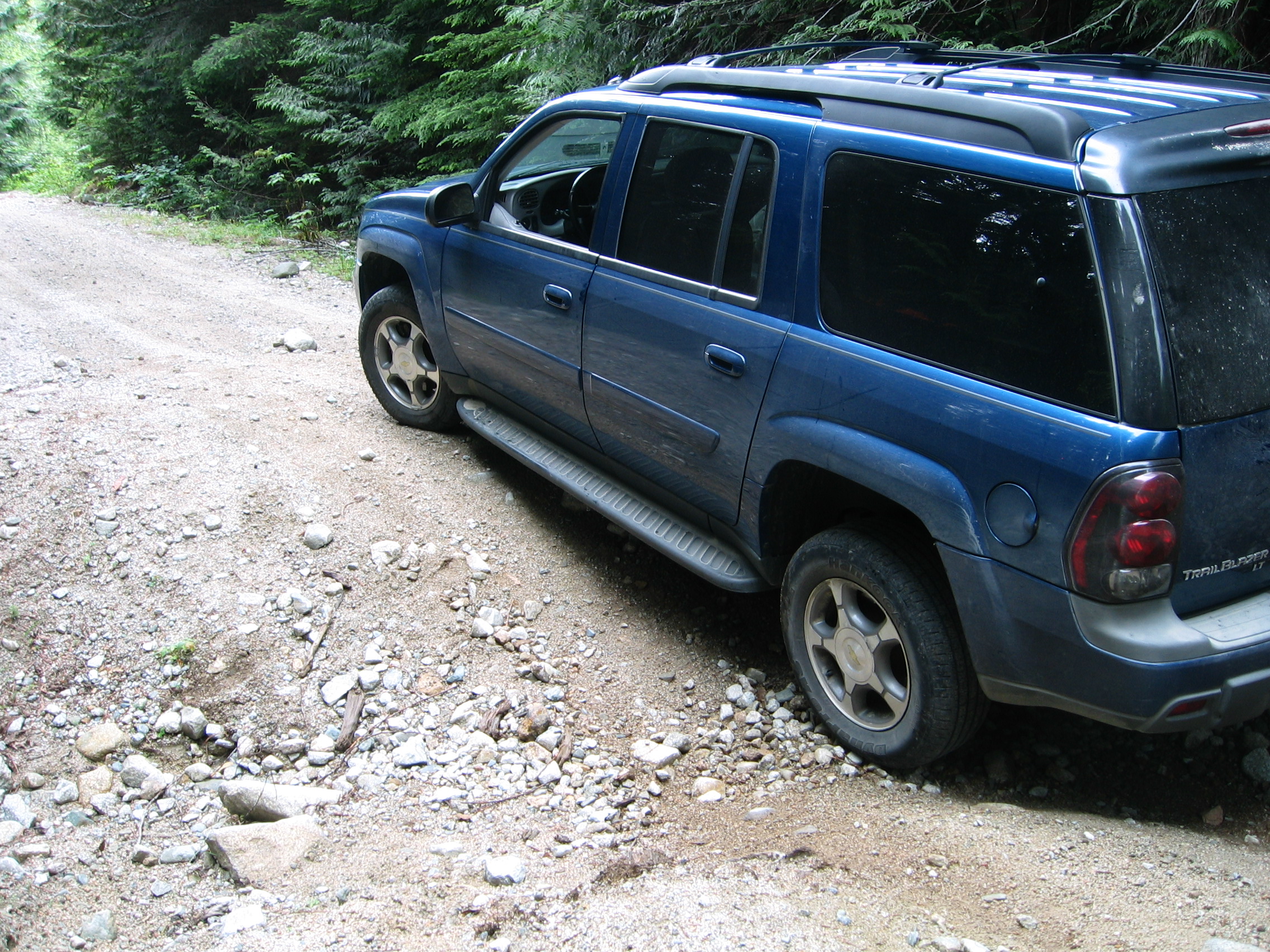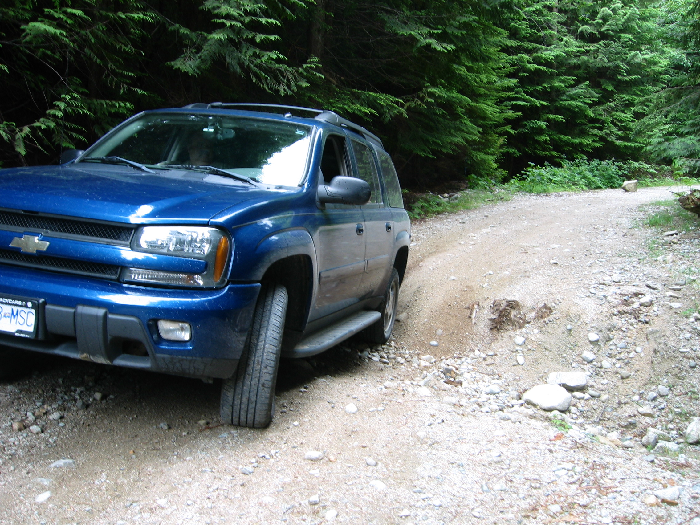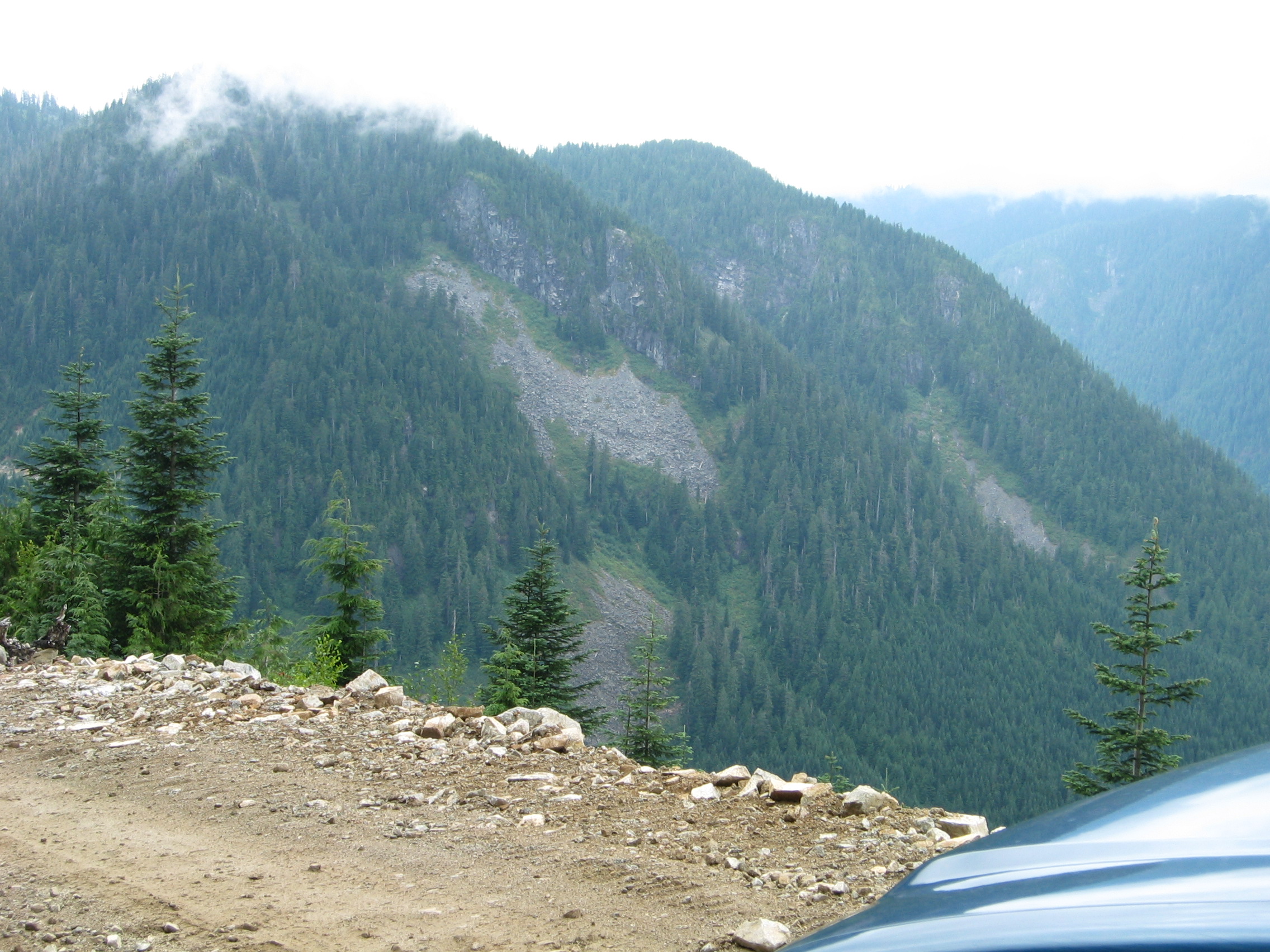 You often don't realize how high you've climbed, until you start the drive back down, and get to see the panoramic views as you descend. On the return run, we took a side trip along a deactivated old logging road, until I finally reached a cross trench that was deeper than I wanted to risk the truck in, where I made a multi-point back and forth turn on the narrow trail, and headed back to the main FSR, and out to home. Most of the roads were not quite rough enough to rate a 2, but the deactivated one had bits that would be 2.5 or 3. The only damage to the truck was a loosened tailpipe hanger that I scraped going through one of the deeper trenches, and it rattled pretty good as we drove on the washboard sections of the road out. I'll have to get it looked after in the next few days, before I hit the gravel again.