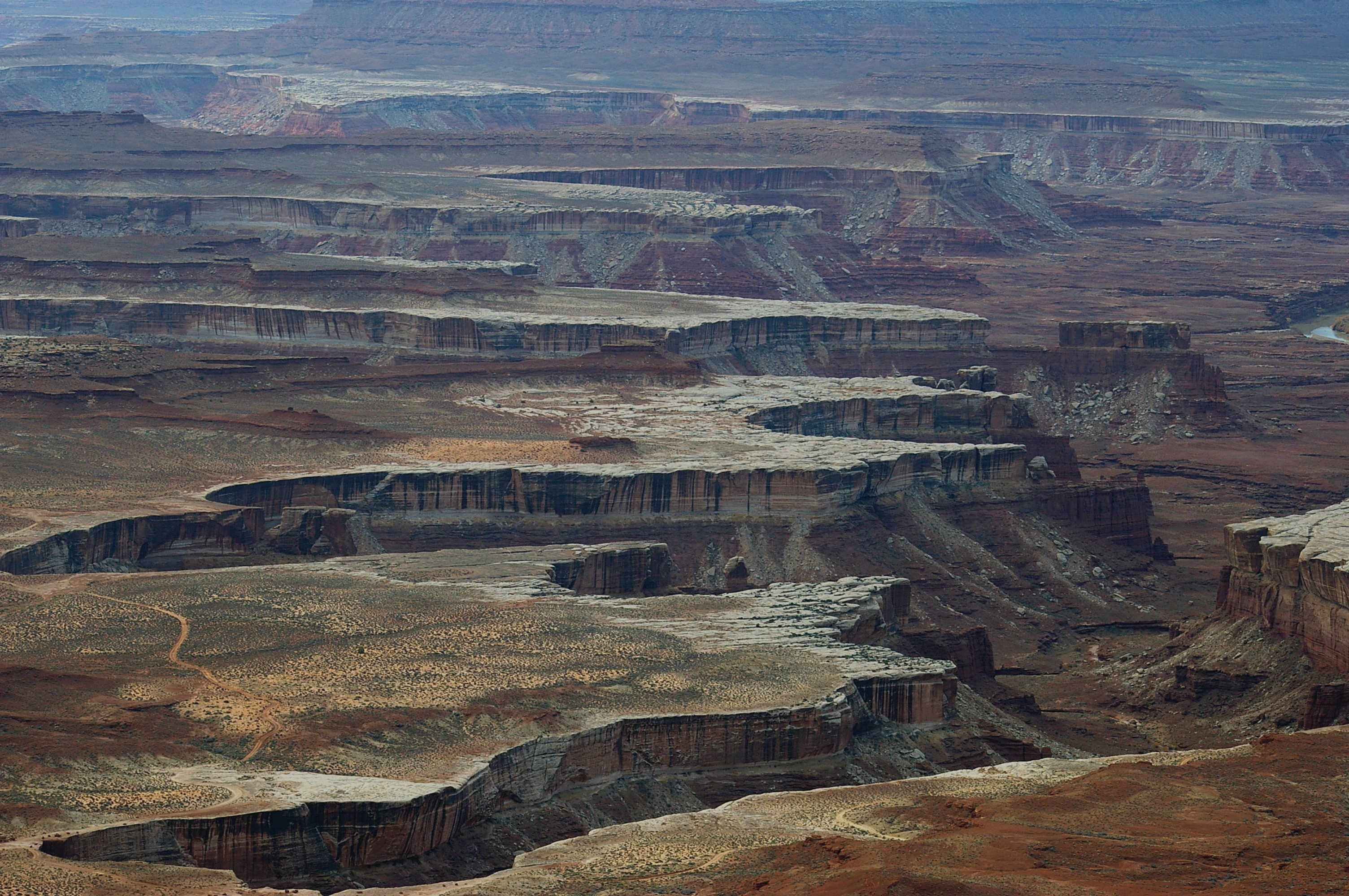 The whole place was wet, but we decided to go ahead anyway. The White Rim isn't a really tough trail, but the west side can be impossible in wet conditions. Our permits had us entering on the east side and we wouldn't hit the tough mud sections for two days. Knowing that the weather was going to be dry until then, we decided to go for it. We saw two people for the next day as a result, as most who had permits were simply avoiding attempting the trail.