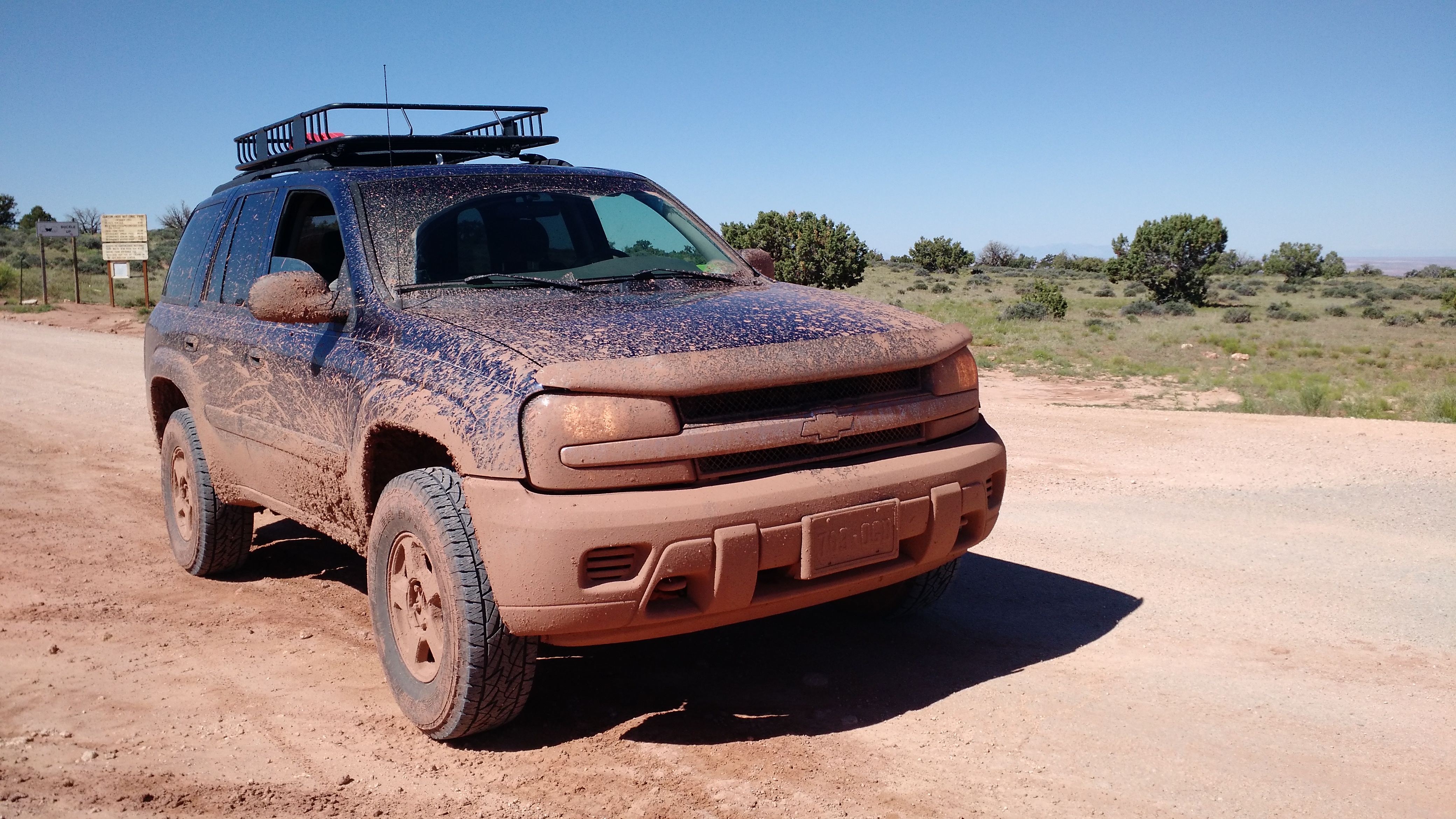 It takes about six hours to get to Moab from Denver. We experienced heavy rain during some of that. After pulling over in Grand Junction, taking on as much fuel as we could and calling the ranger station in Moab to get the local weather/road report, we decided to enter the trail from Potash Rd. instead of going down the Shafer Trail from Island in the Sky. The latter option is simply too slick (red clay) and dangerous when wet.