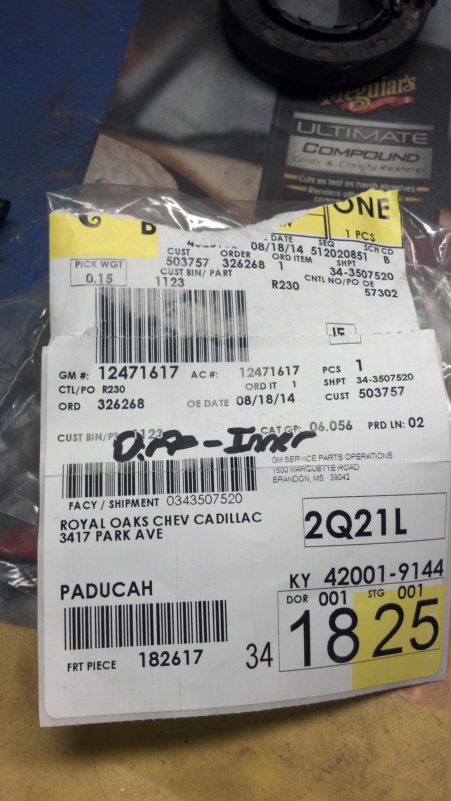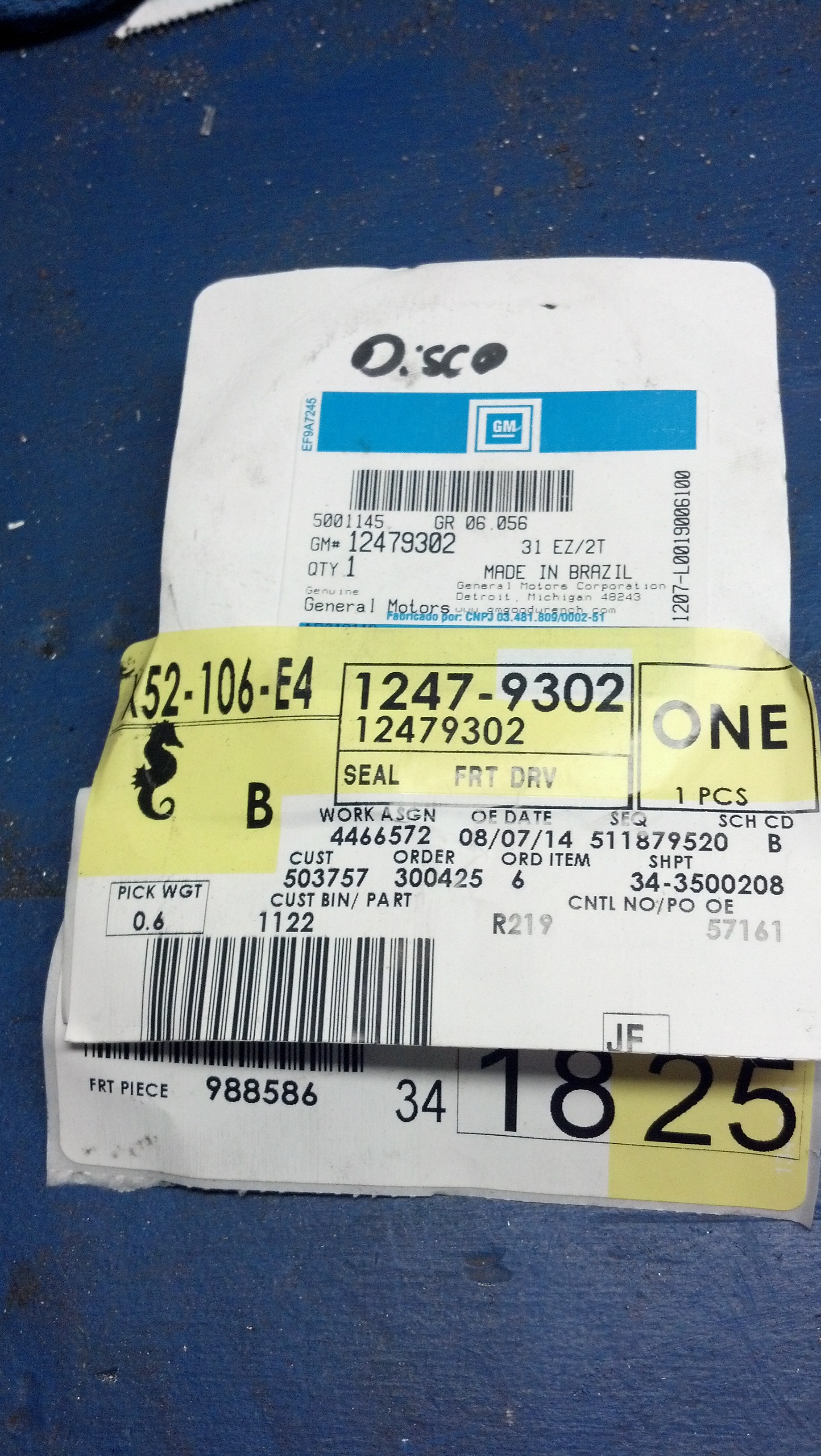 CURRENT (Early 2015) GM part numbers can be found in the pictures below. Pictures are both seals for the differential and the outer seal for the disconnect. Both differential seals will have metal tabs on the back that will fold in to place to hold the adjusters for the carrier in the diff. These are offset on purpose and will not match the adjustment rings in the diff housing. This allows you to seat the seals in any orientation and still allow it to grab the rings with 3 tabs. If you don't understand now, you will once you remove the seals. I do not have the part number for the inner disconnect seal, I ran out of time on the project, due to removal of the diff that had jammed in the oil pan, but my seal was in perfect shape and holds grease instead of oil. Most dealers will try to sell you the outer diff seal and the outer disconnect seal, so cross reference the parts correctly. These are identical seals to the OEM AAM ones that you'll be pulling out.
