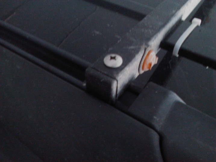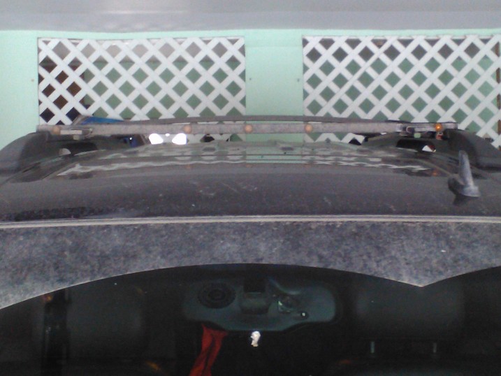 that way the bar could be removed if needed, the hook up ran through the plastic cap on the rail, drilled through the roof,