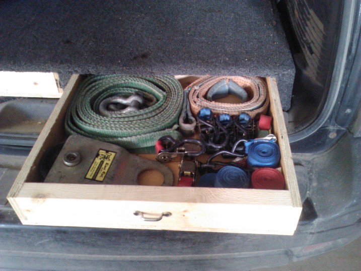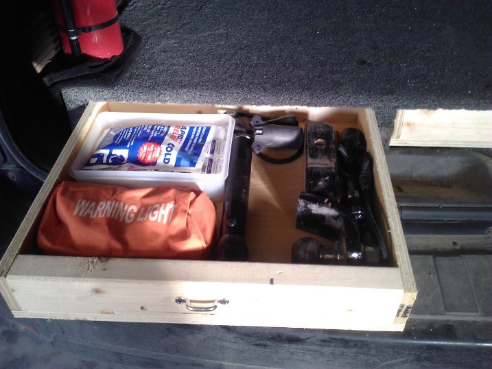Room for receiver hitch and pins, led safety flares and first aid kit, and led flashlight.....