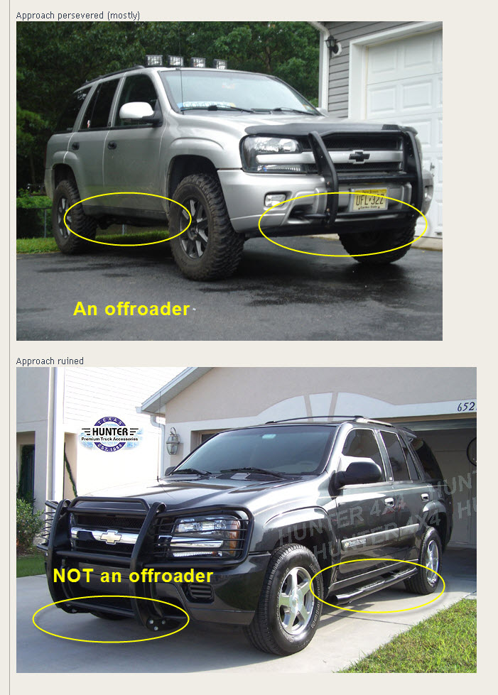 DetsTB wrote:This got my attention! I don't want to be shooting myself in the foot. Excuse me in advance if this a newbie question but how will it ruin your approach angle? How is it different from the steel bumpers like MDB? Can you elaborate.