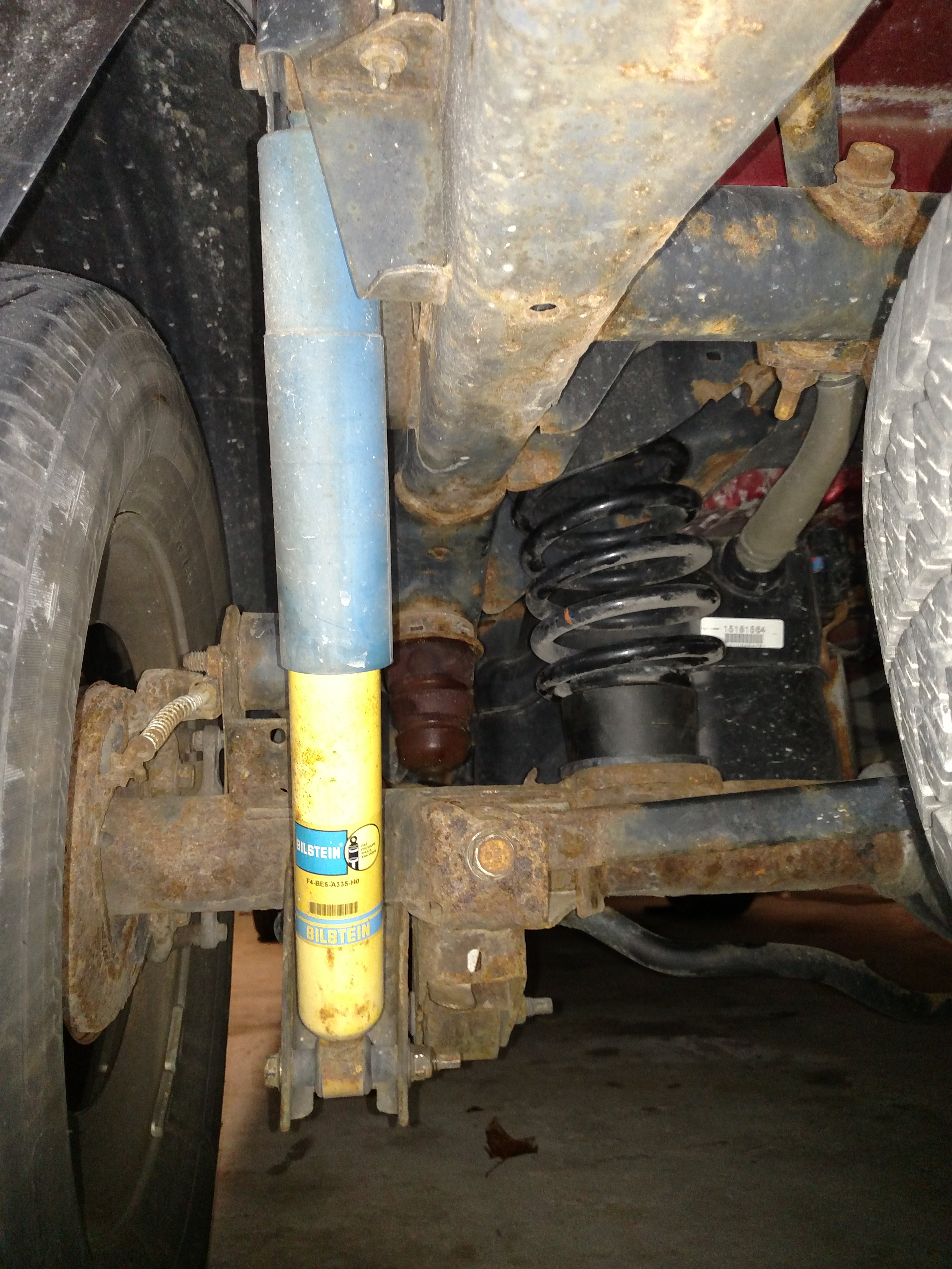 Just driving it to and from work the past 2 days my front bilsteins seem to be doing nice. I cross a rough railroad crossing and a terrible gravel road to get to my shop. I hear a knock from the rear when its extended, fronts handle it great. Could this be the end links hitting the UCA? I need to get that sway bar out of there.