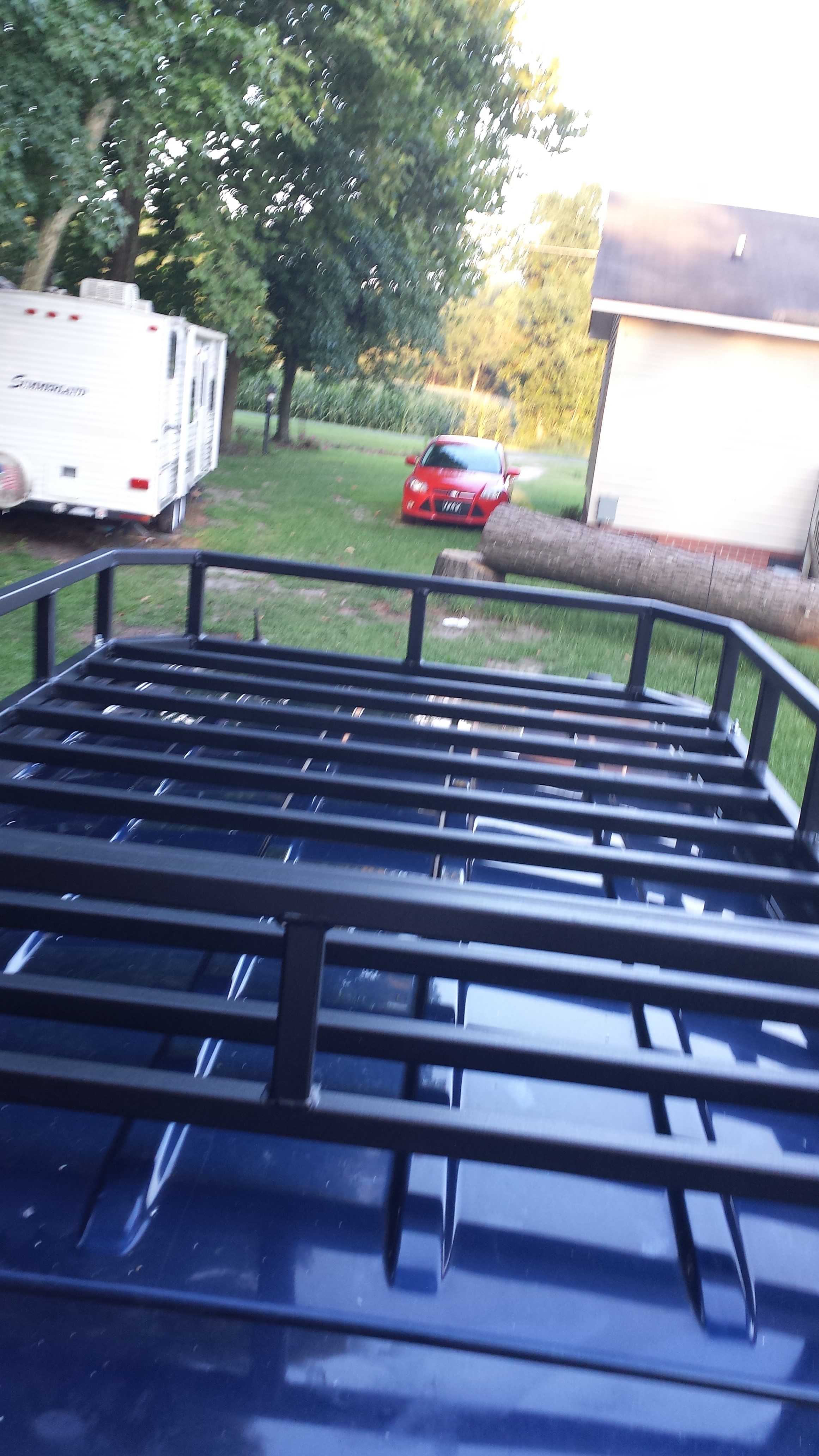 I picked up my new, custom made roof rack Friday. I painted it and got it mounted last night. I love the look and it's strong and light. It's made from 1"x1" aluminum square tube and fits the stock roof rail width. It didn't come with any mounting provision so I used Roadie's approach - through the stock rails. If anyone is interested in one, I'll see about a possible group buy. They are cheaper than a Thule or Yakima.