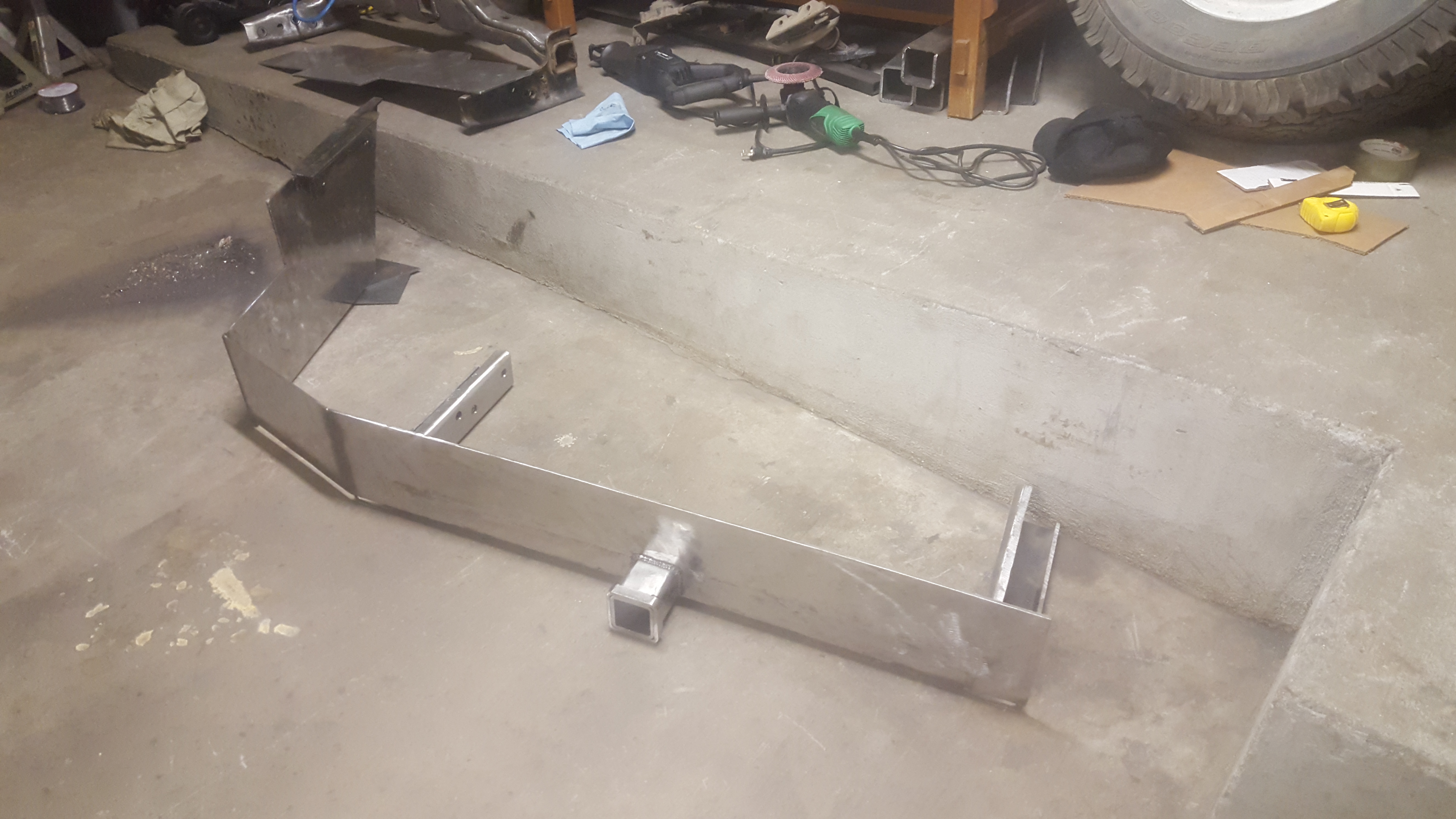 After way too long and probably an unnecessary amount of work my rear bumper is finally finished. I've wanted to have a nice bumper for quite a while now and after drooling over the ones on here I decided to start on it. I owe so much to Barton for helping me out by pointing me in the right direction when I wasn't sure of what to do, or the best way to do it. I would've loved to have one of his bumpers but being in Alaska, the shipping would've killed me, as would my wife. It's not perfect by any means nor is it even close but for the first time fabricating anything I'm happy with it. Anyways, on to the pictures now....