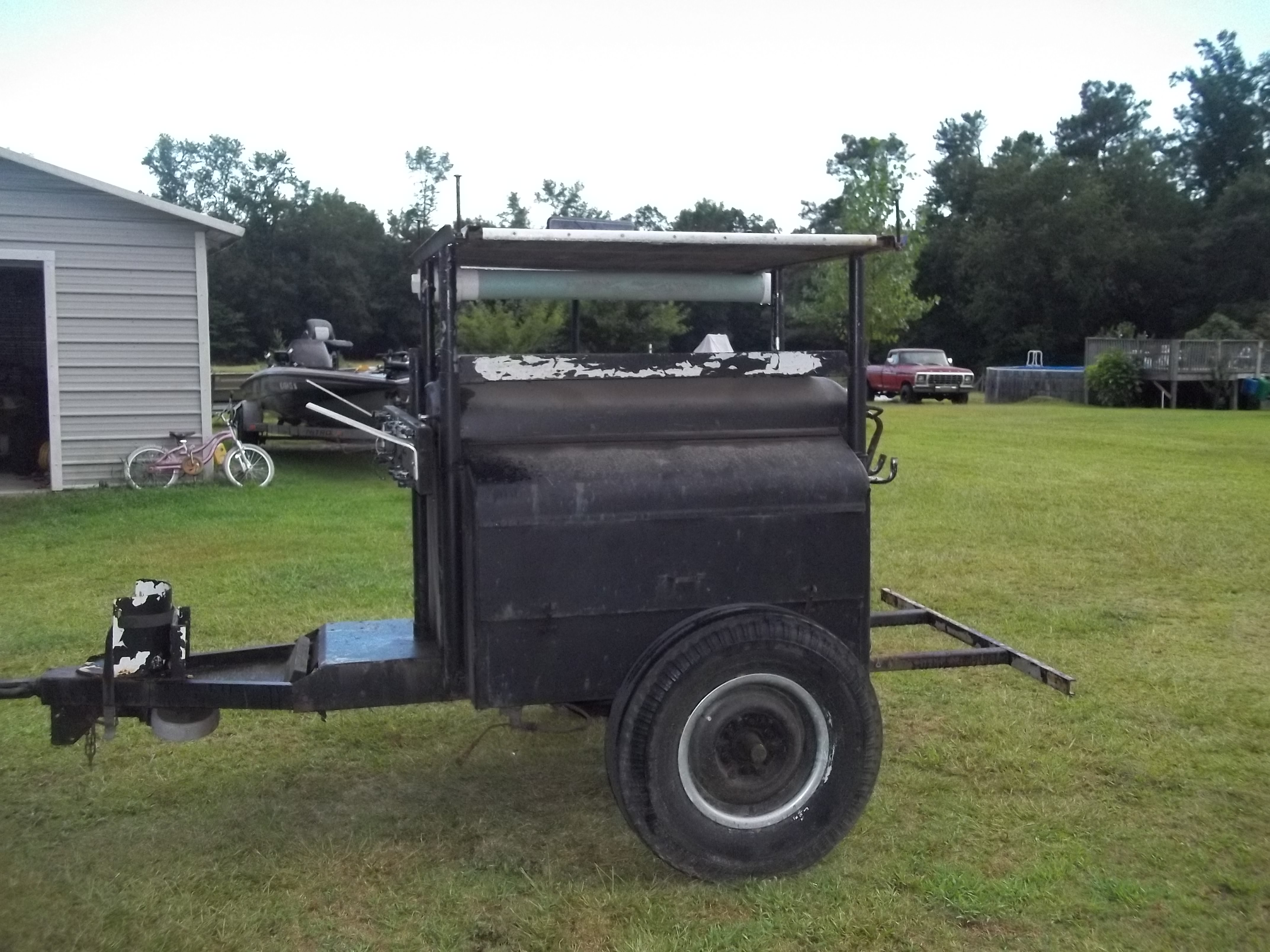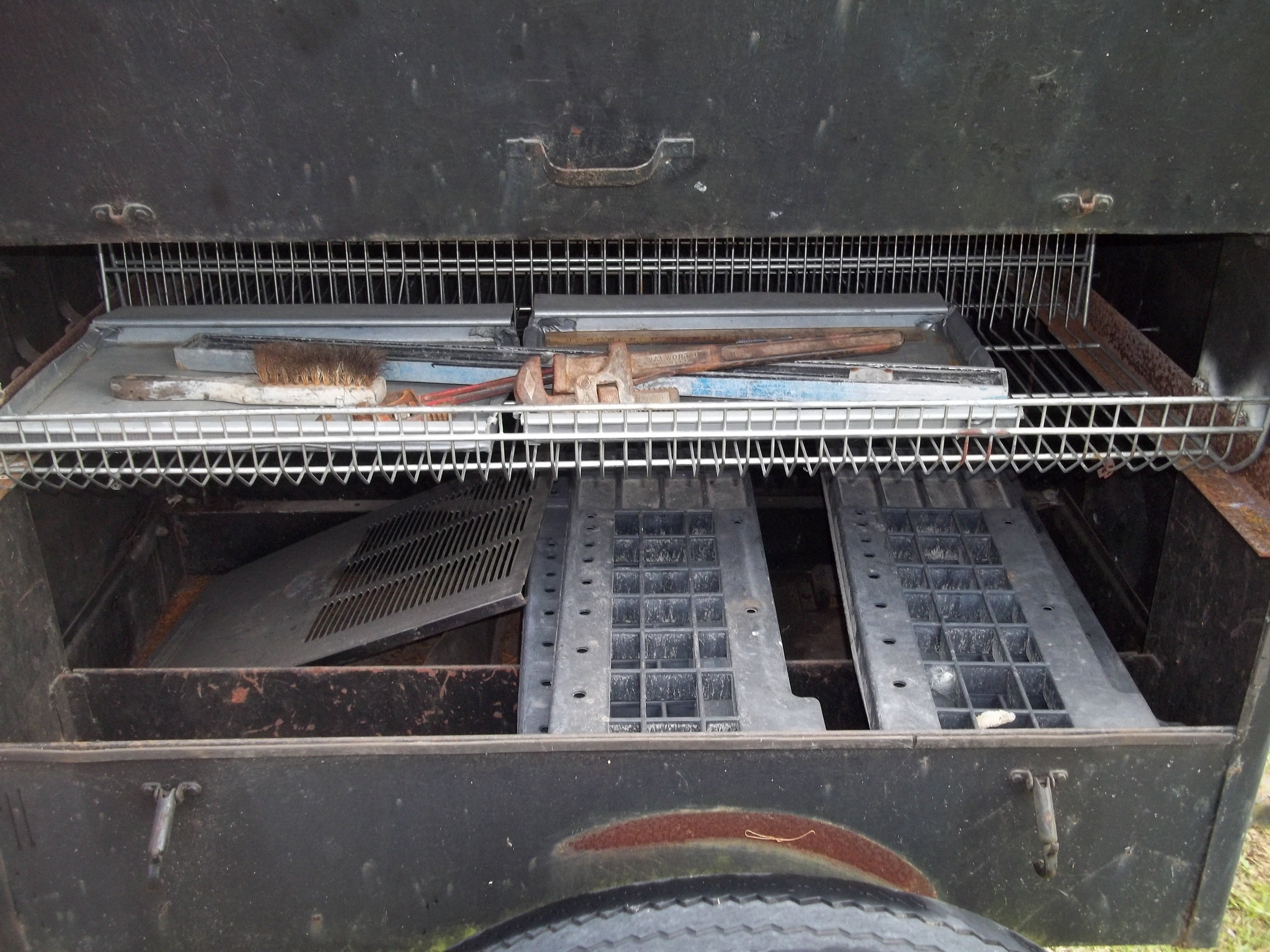 I think the first thing is to clean up some of the rust, do something about the hitch and see what I might be able to round up in the way of some springs for the axle. He had a bunch of ladders on the top rack and said the springs made it sway too much. I might check and see if he still has the springs that were on it. He left a few tools in the trailer he might want to trade them back for!