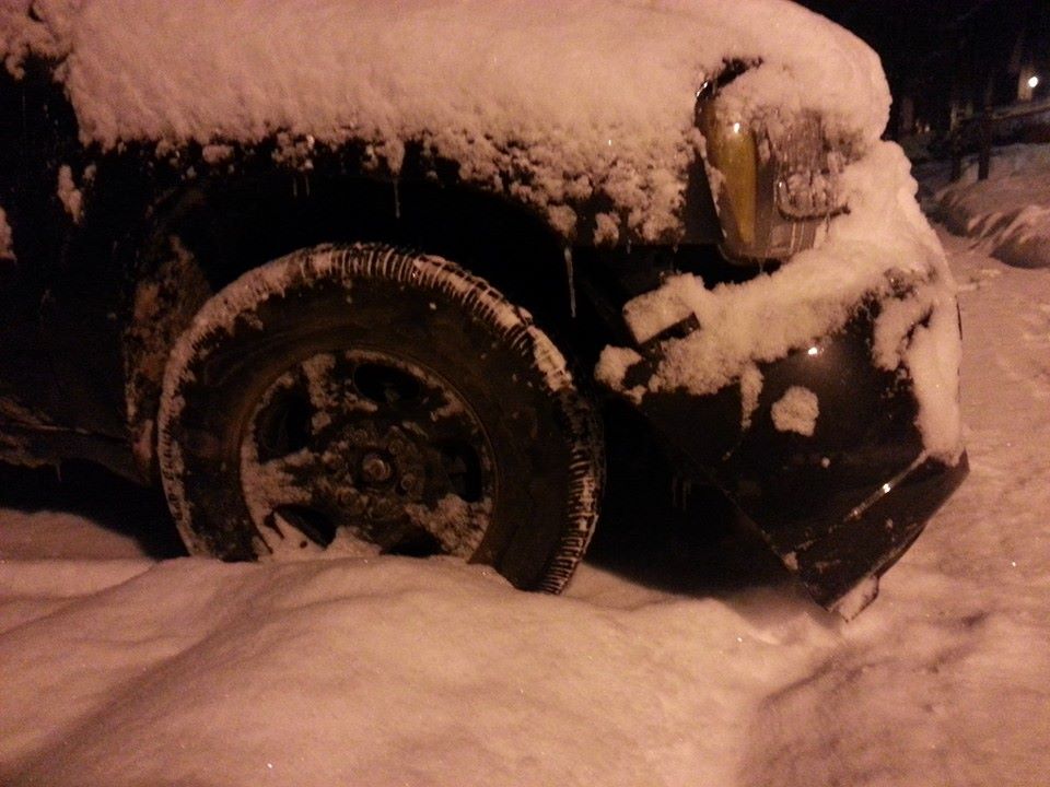 - My most recent picture and why I decided to do some upgrades. Long day at work driving to my girl friends house, I started down a slight grade into her neighborhood at 5mph. By the time I got to the bottom (a T intersection) I was doing 25 and had 3 choices a parked car, a house, or a curb with a knee wall. So I picked the curb and spent the the hour pulling my tb off a wall and changing my flat in the snow. Luckily the week prior I had the spare down to change the vent purge valve, so I didnt have to deal with the spare being stuck while in the snow. So me being the type of person I am, you cant replace stock parts with stock parts. So I have spent the last 2 months researching different things on here and other sites and my journey has begun.