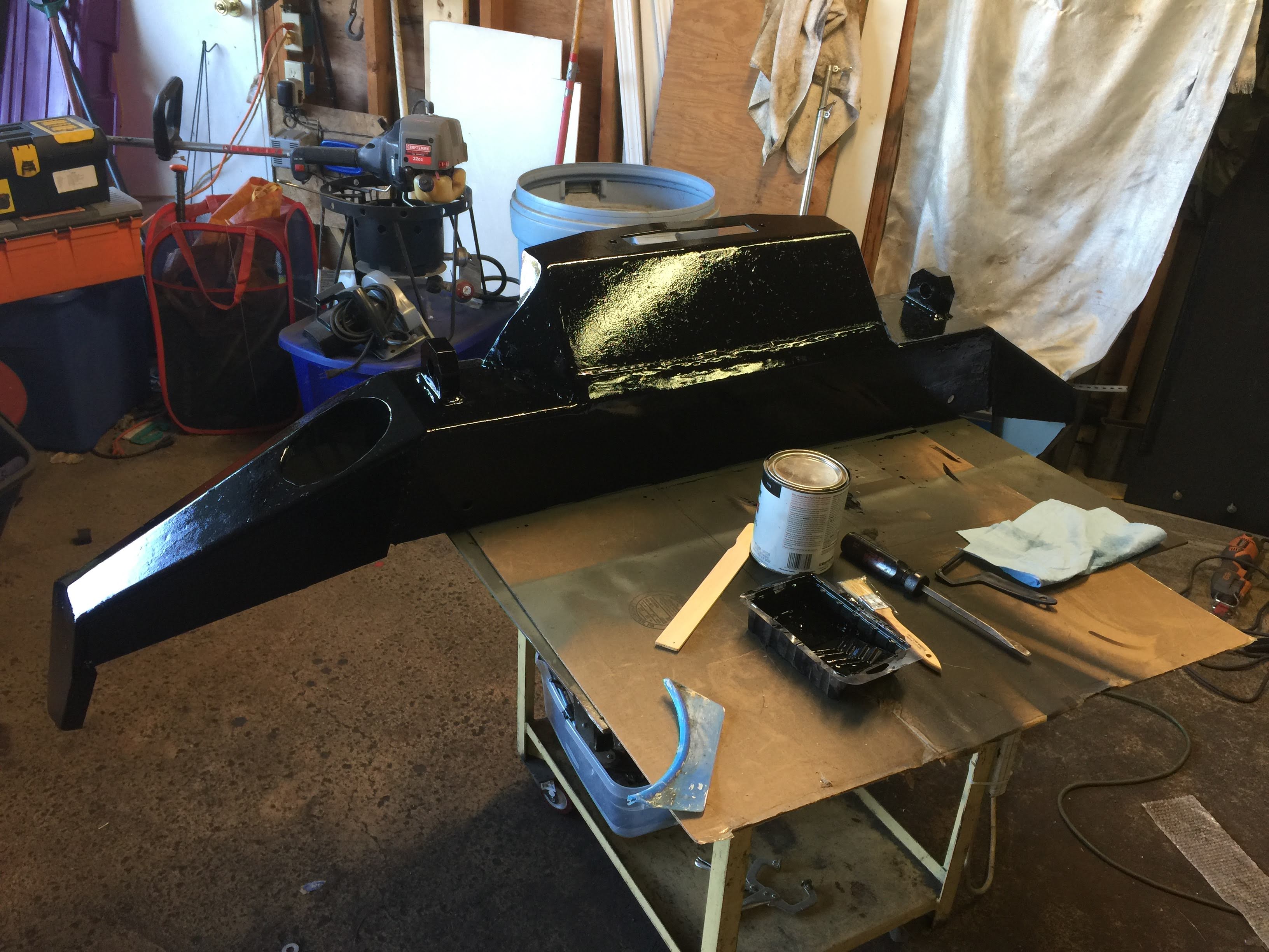 I bought a qt of Rust-oleum Hammered black and went to town on the basket. I figured if I brushed it on it would be a thicker coat. We will see how it holds up.