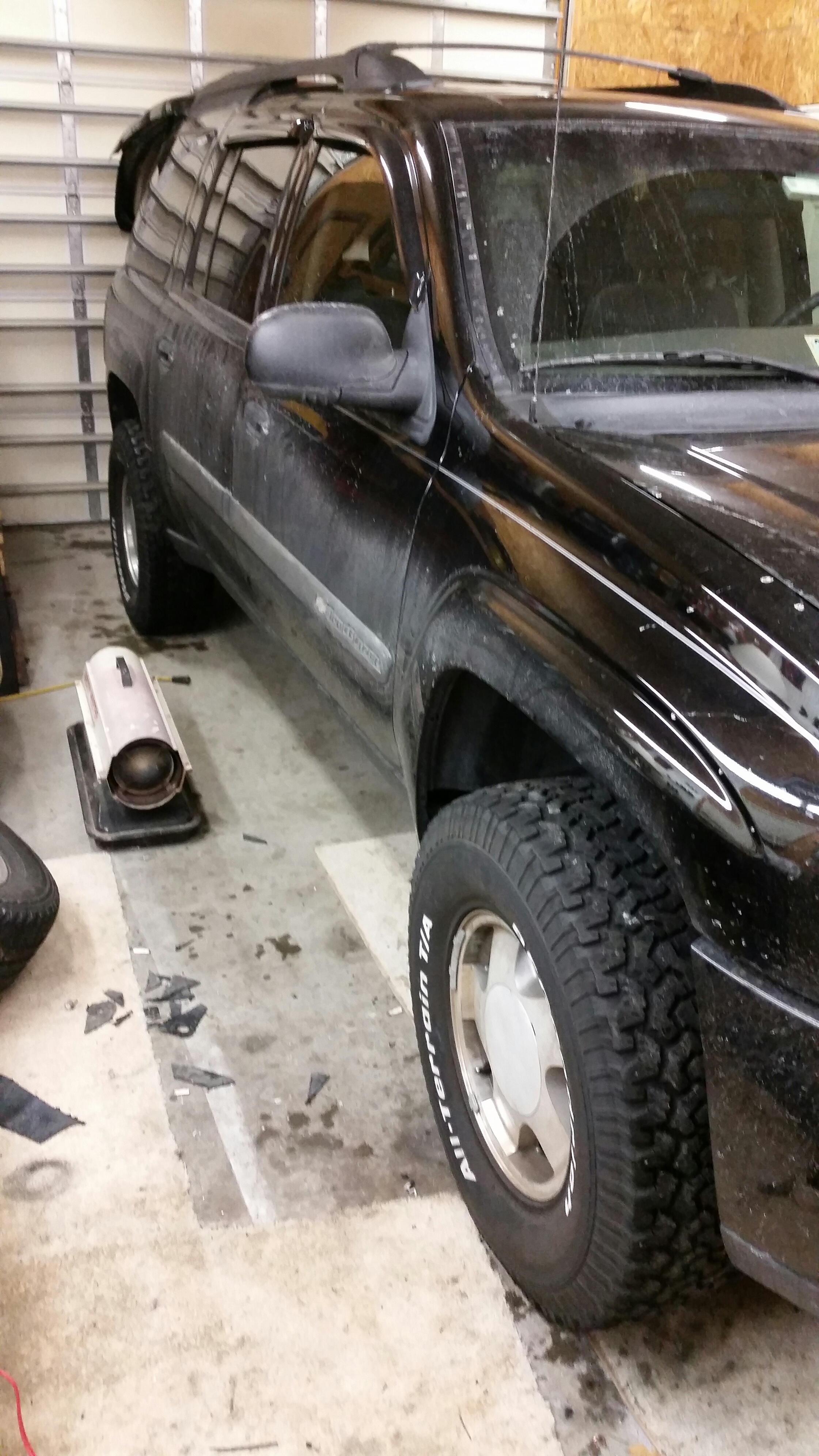 What the heck kinda picture is that? Don't tease me! I'm encouraged by what I can "almost" see in it. Back that land yacht out into the cold so you can take a side pic. I'm dying to put 275/70s on my 18", yes, 18" A/R wheels (33.2") using only Mark's 3" spacers and 87s (already purchased and sitting in my house) without a body lift. All I saw mentioned in your posts was a 3" (suspension?) lift. Did you stay with stock coils? The stock 83s on my 04 2wd EXT and a 2" R/C levelling kit fit my current 31.6 BFG A/Ts with acceptable but not comfortable clearance. I'm saying all this because I don't think I can do 33.2 even with 89 springs, so I can't wait for more pics of yours.