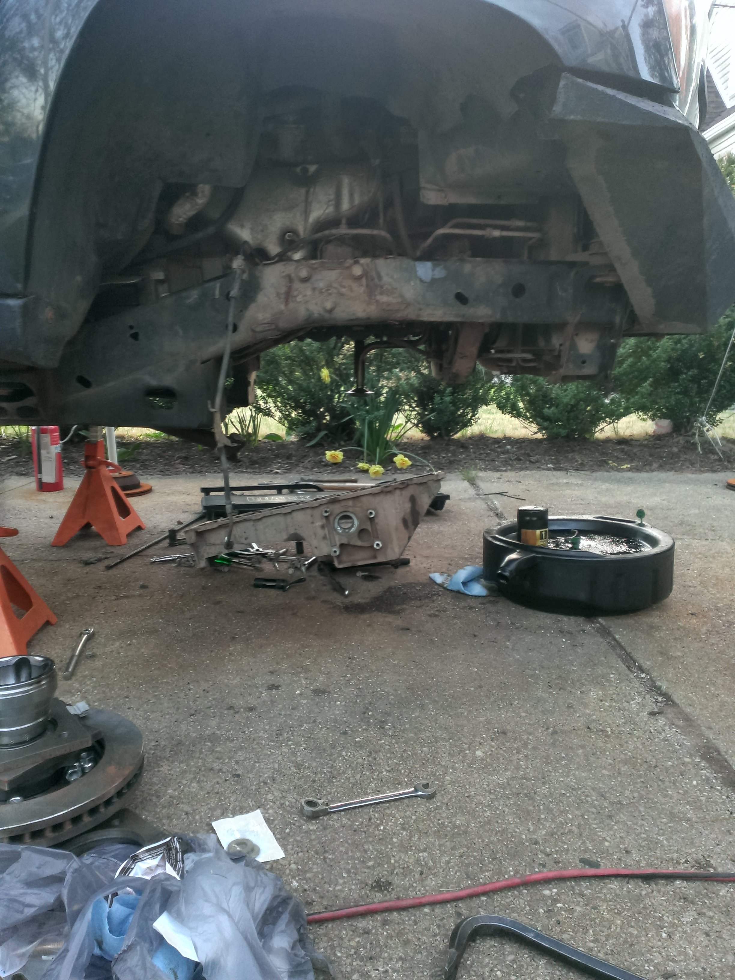The front diff from the 3500 wouldn't fit in the stock subframe, additionally it couldn't be kept at a reasonable height if I centered it even with a rear sump pan, so I used it in the stock configuration and tossed some 5.13s in it. With 37s it should act about like a stock trailblazer with 4.10s