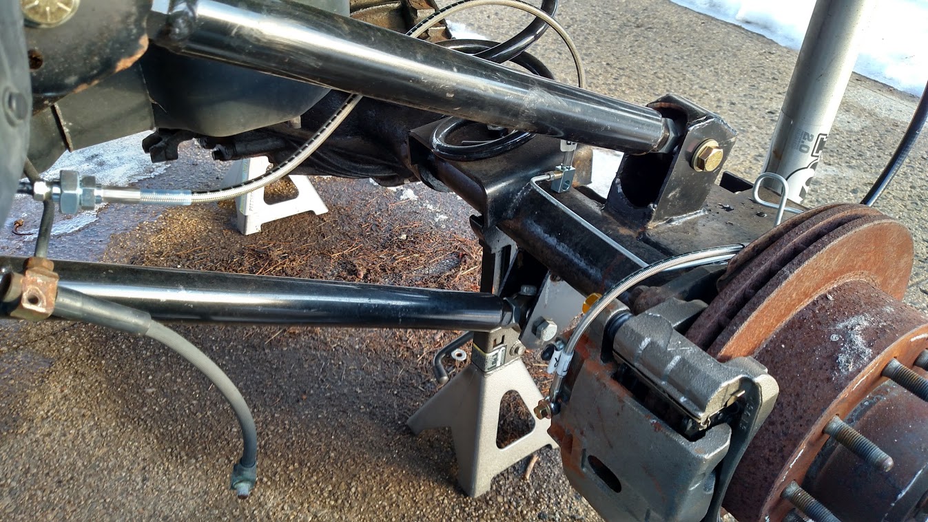 Eventually I got the wheels powdercoated, assembled them with James02, and aired them up without issue, tossed some airsoft beads in em for balance. Bent up some subframe tubes, made some diff brackets for the front diff and the rear axle too. Ended up using some brake lines from a 3500 silverado with a 6" lift and adapted them to the trailblazer lines.