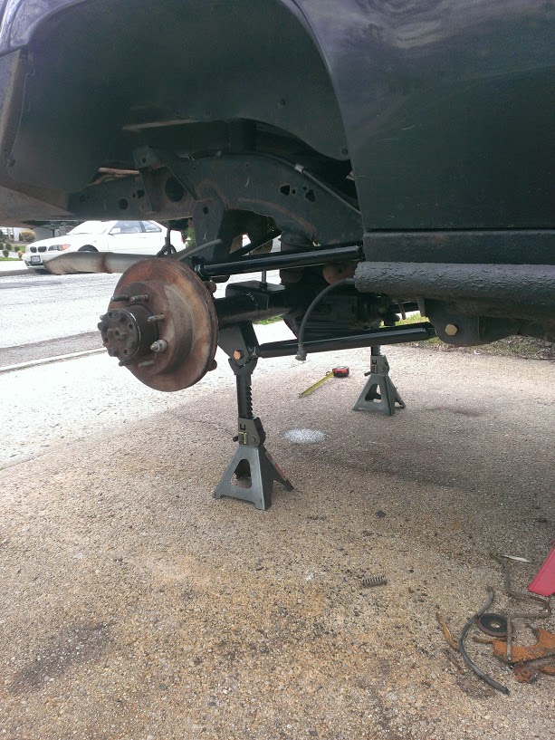 I've gotta find some springs to drop the ass end a bit or buy some coilovers... probably shoulda done coilovers from the get go. At the highest point (hi lift on the roof basket) it's about 7' 8", I think I can get it real close to 7'. There's already a few items I would do differently if I were to tackle this again. But that's kinda the case with any build I think.