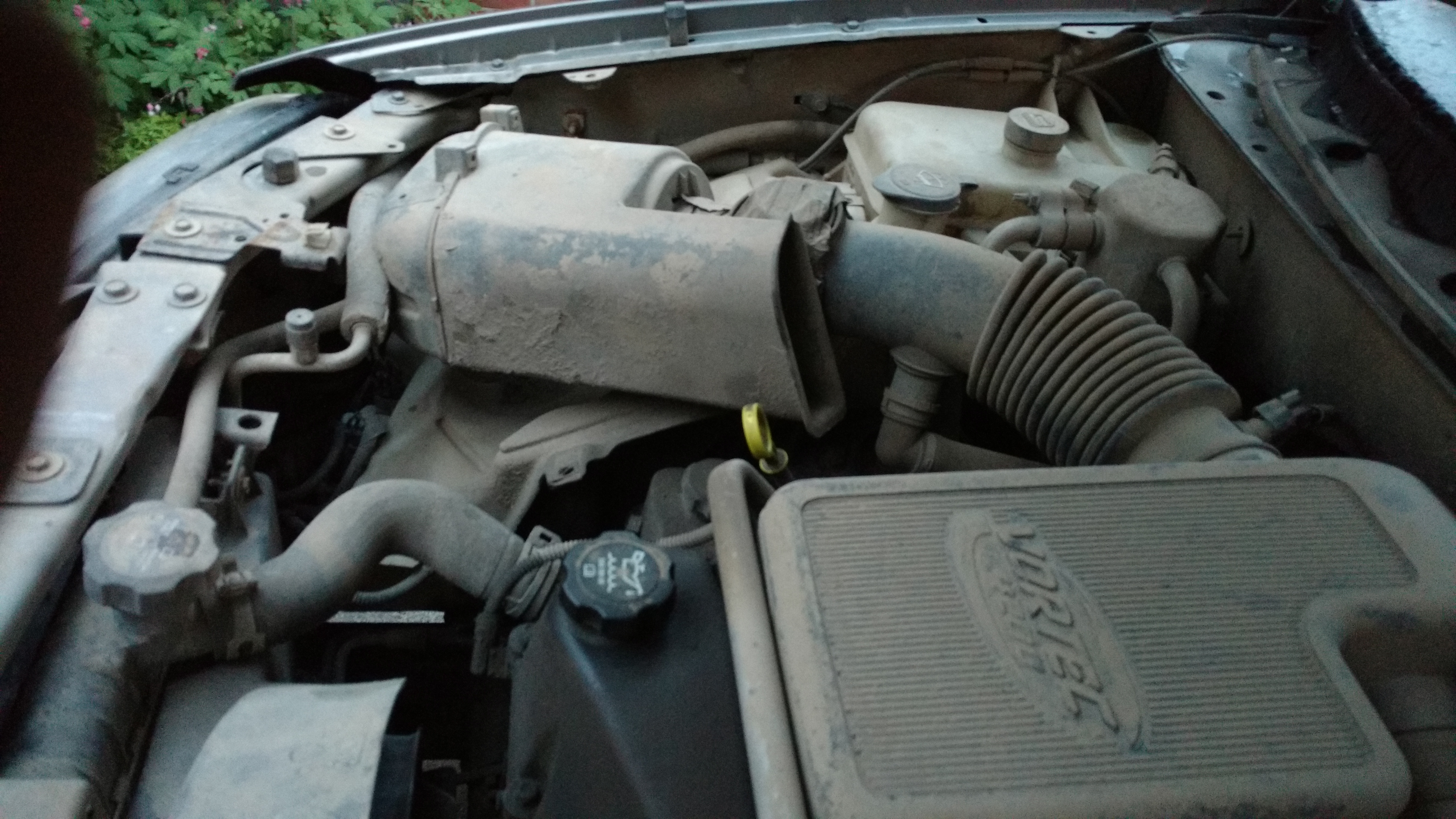 That's a pretty nifty idea, I like it. It's definitely pulling in hot underhood air, but it's better than pulling in water! lol