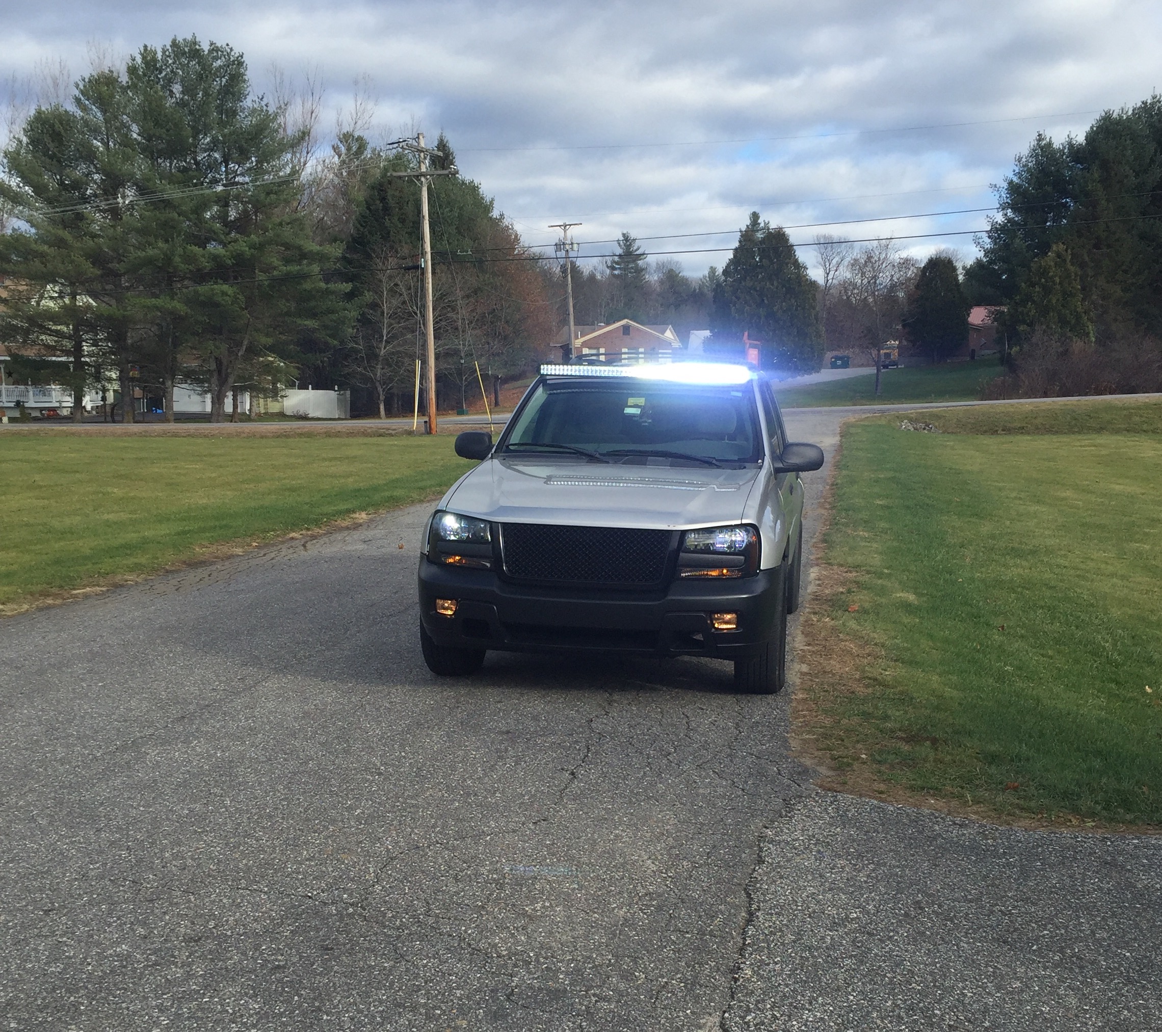 Lightbar all hooked up! It is BRIGHT... Some pics during the day with the lightbar on. Took a pic of the lightbar at night. The picture does not do it justice.. because its brighter than in the picture. The cabin glare isn't bad.. Might see if a windshield visor will help. If not Oh well... The whistle is noticeable, but I also drive around with my music at full blast all the time.. So it doesn't bother me. Overall, still lovin this lightbar.