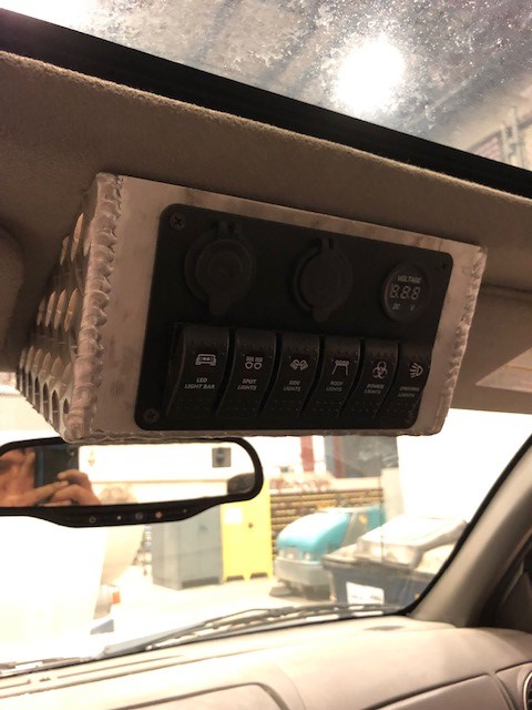 Interior Modifications: LED Overhead Lights, Second Battery, 2000 Watt Power Inverter, 6 switch panel for exterior lighting.