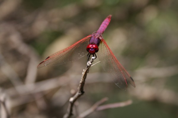 Very nice shot of the dragonfly. Good background blur. Not sure what aperture you used, but f/3 or 4 could have blurred out the background even more. Sometimes that makes a nice aesthetic look. I also think it could be offset (left or right) a bit from center, which would add a little more interest.