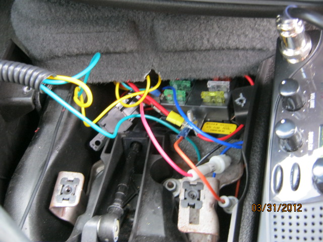 Just in front of the shifter, and beneath the area of the front dash. I don't think the piece normally comes out but it'd been taken out previously so I've got use of it. :drive: Not much room for more wiring in there though, so the next fuse box will be under the rear seat on the passenger side. :mechanic:
