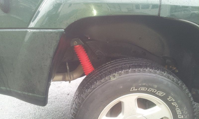 After 4 junk yards we finally found a couple Trailblazers 2 cities over. Got a new fender for $48 bucks. Would'be been $40 if we had taken the smashed one in, but I didn't want it taken off until a new one went on. Looks like trail damage after all. ;)