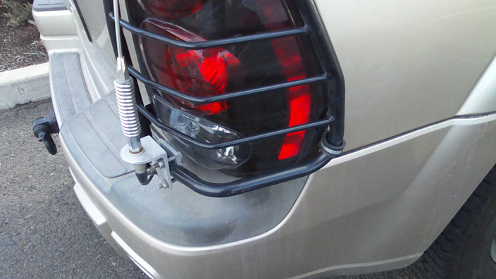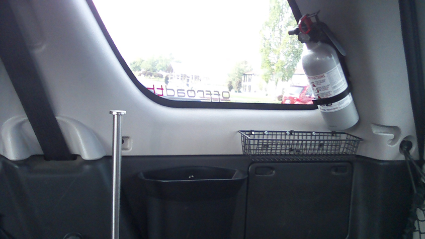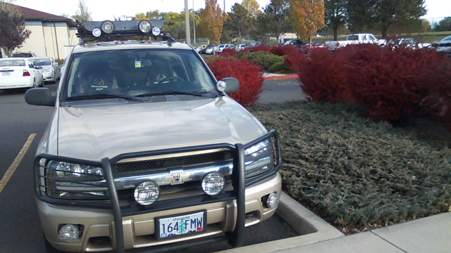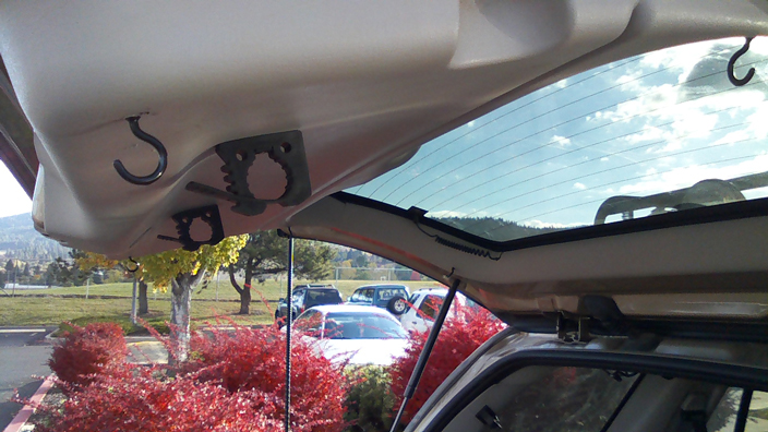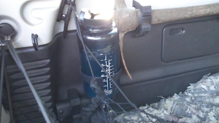 I kept trying to find some kind of cover for when the tailgate was up, kind of a changing area. It needed to be waterproof, let the wind through, but provide enough cover. So I used a 3D camo blind, and then added hooks on the door. The finished result: